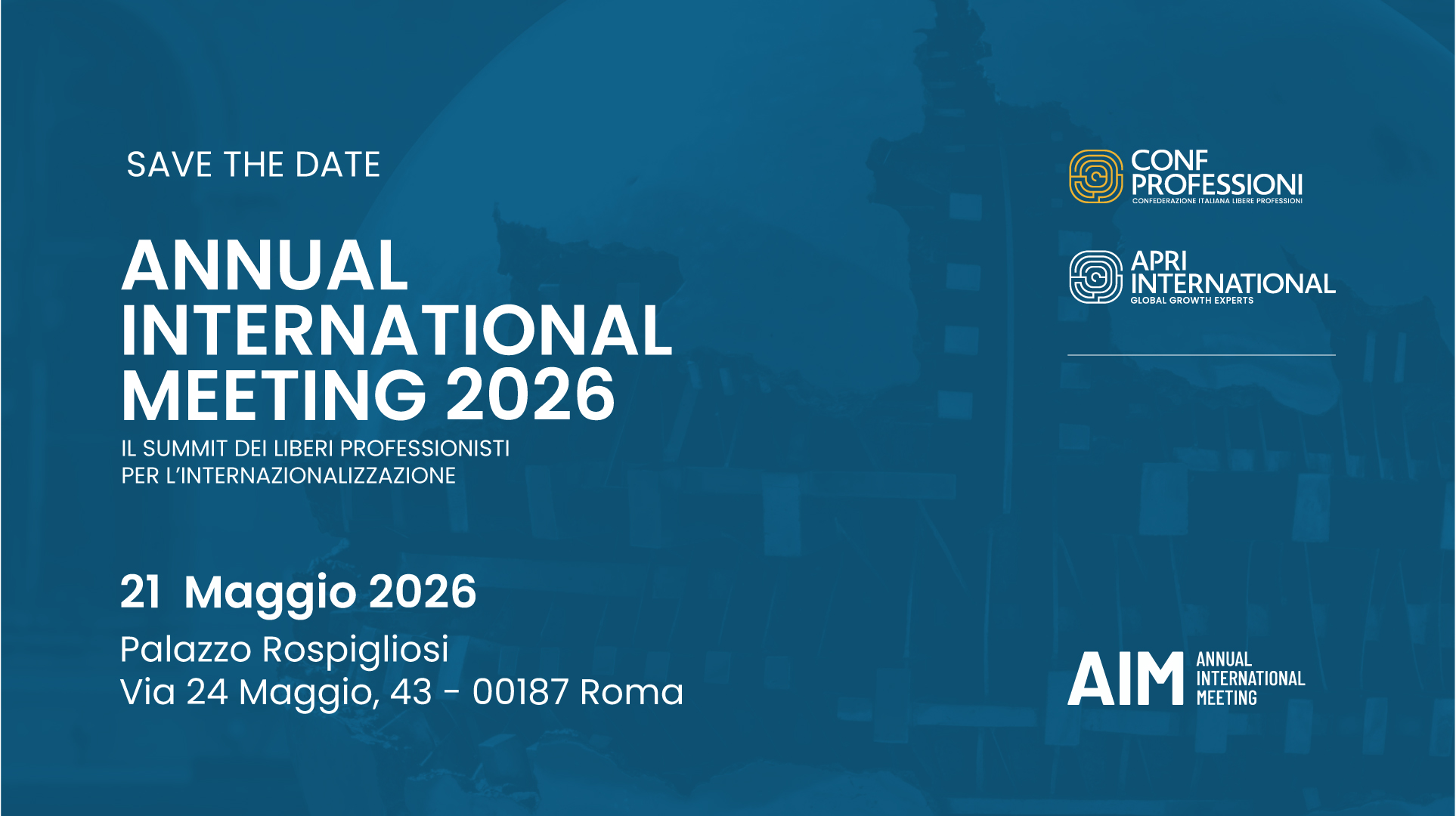 ANNUAL INTERNATIONAL MEETING 2026 Il summit dei liberi professionisti per l’internazionalizzazione 📅 21 Maggio 2026 📍 Palazzo Rospigliosi – Via 24 Maggio, 43 – Roma ✨ Quarta edizione di un [...]
