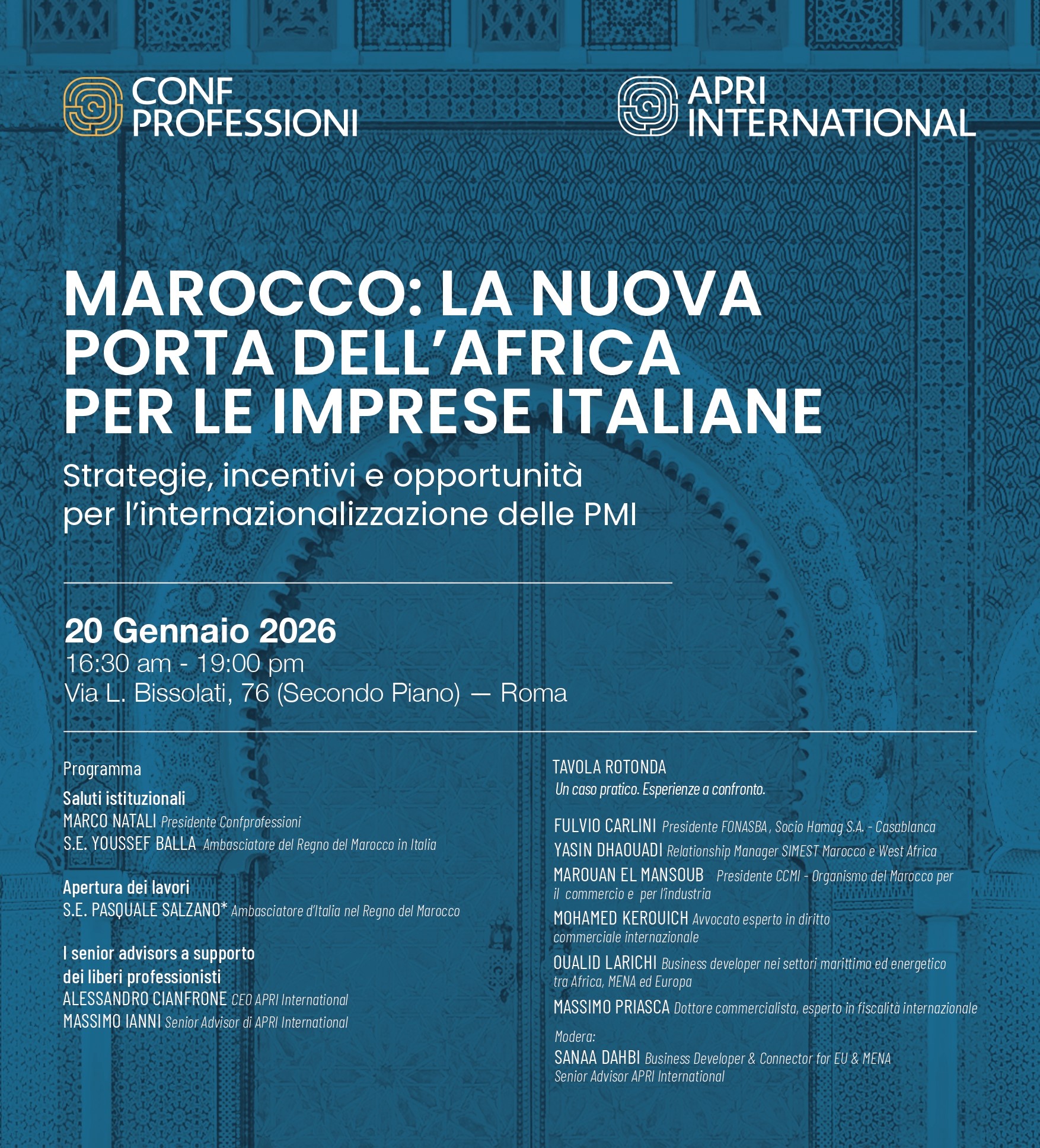 Attraverso testimonianze dirette e interventi autorevoli, l’iniziativa fornirà strumenti concreti e opportunità di networking per affrontare con efficacia i processi di internazionalizzazione verso il Marocco e l’area MENA.